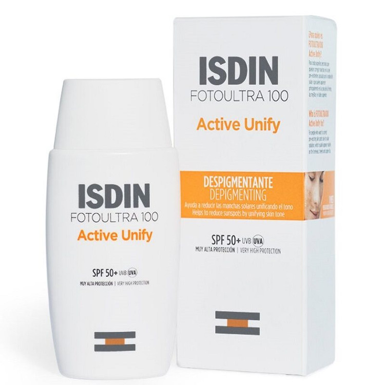 ضدآفتاب اکتیو یونیفای ایزدین SPF50 یک ضد آفتاب ضد لک و روشن کننده از برند اسپانیایی Isdin میباشد. این ضد آفتاب به صورت فیوژن فلوئید است و دارای بافتی بسیار سبک می باشد و به سرعت جذب پوست شده و احساس سنگینی ایجاد نمیکند. ضد آفتاب ضد لک اکتیو یونیفای ایزدین حاوی کمپلکس ضد لک DP3 است که حاوی ماده موثر PKEK است و با تأثیرگذاری بر مراحل اصلی ملانوژنز باعث تنظیم تولید ملانین پوست میشود و در نتیجه میزان لکهای پوست کاهش پیدا میکند. این ضد آفتاب از ایجاد لکهای ناشی از نور خورشید جلوگیری میکند. نتایج استفاده از این ضد آفتاب بعد از ۱ ماه استفاده مداوم کاملا مشهود است.