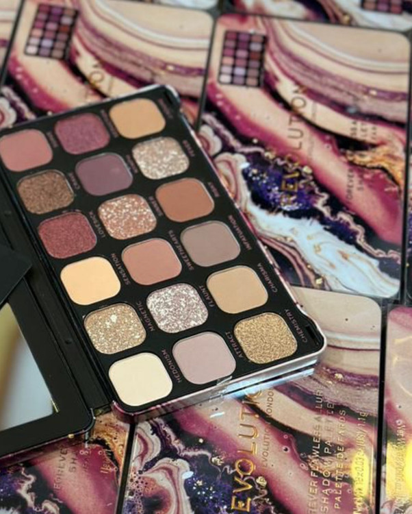 حاوی هجده رنگ مات، براق و گلیتر مرمری است. در این پالت، ترکیبی از رنگهای خنثی، گرم و آلبالویی تیره مشاهده میشود. میزان رنگدانههای پالت سایه رولوشن بسیار زیاد است. بنابراین استفاده از آن بسیار آسان بوده و با هر سطحی از آشنایی با آرایش (چه در سطح مبتدی و چه در سطح حرفهای) به راحتی میتوانید با کمک این پالت، سایهای جذاب و زیبا روی پلک ایجاد کنید. سایههای این پالت قابلیت ترکیب بالایی دارد. دوام و ماندگاری سایههای این پالت روی پوست بسیار بالاست. بدون نیاز به پرایمر، تا ساعتها روی سطح پوست میماند و نیازی به ترمیم آرایش نیست. این محصول ضدخشونت علیه حیوانات است.