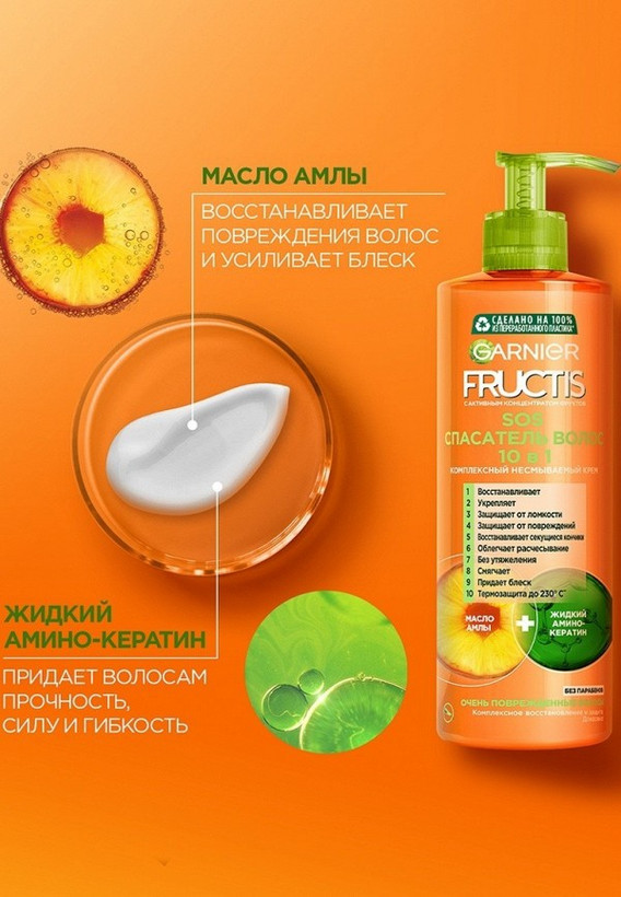 یکی از برجسته ترین محصولات مراقبت از موی برند گارنیر است که حاوی عصاره های طبیعی بوده و به ترمیم و بازسازی موهای آسیب دیده و دوشاخه شده می پردازد. این ماسک حاوی روغن عصاره میوه آملا (انگور فرنگی هندی) جهت استحکام بخشی، ترمیم و جلوگیری از دوشاخه شدن موها می باشد. آملا سرشار از آنتی اکسیدان، آمینو اسید و ویتامین است و موهایی نرم و سالم را به ارمغان می آورد، علاوه بر این ماسک ترمیم کننده گارنیه حاوی پروتئین گیاهی کرافیل با قابلیت جذب عمیق در فیبر مو و پر کردن تخلخل های موهای آسیب دیده و شکننده و ایجاد موهایی سالم، صاف و ترمیم شده می باشد.