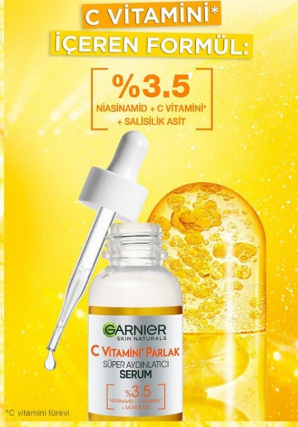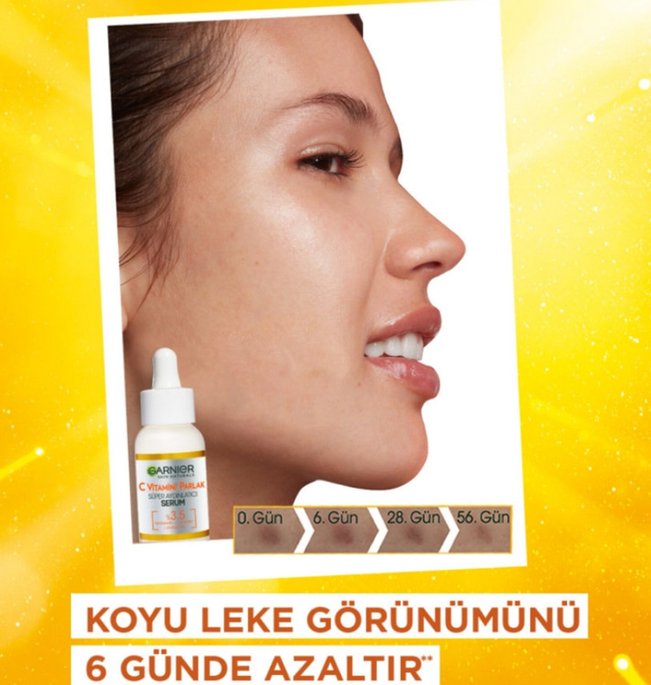 این سرم ویتامین C گارنیر به دلیل غلظت بالا حاوی (3.5٪ نیاسینامید + ویتامین C + اسید سالیسیلیک )خواص آنتی اکسیدانی داشته و برای روشن کردن پوست و محو کردن لکه های تیره و جای جوش طراحی شده است همچنین خطوط ریز و منافذ را کاهش میدهد و پوست را صاف تر ، شاداب تر و درخشان تر می کند.