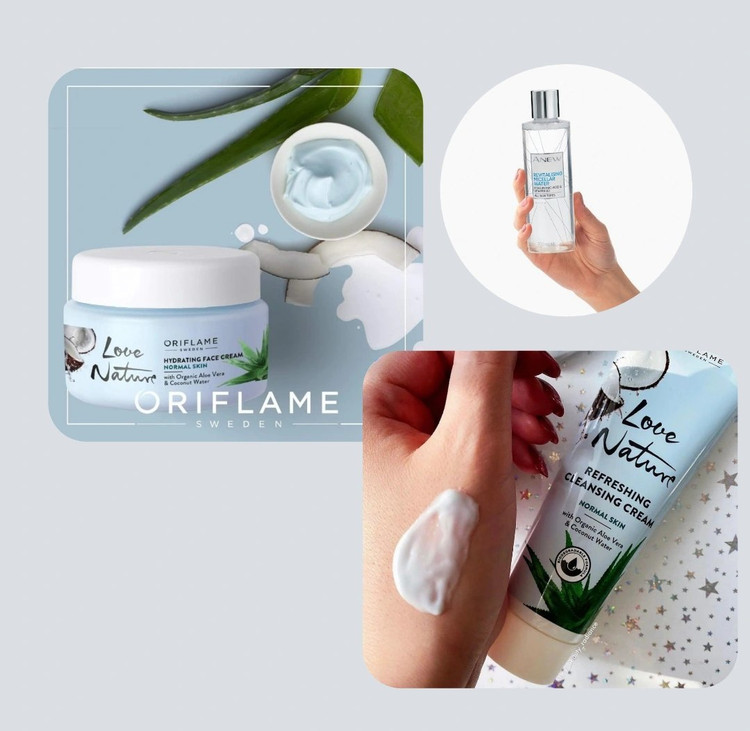 ست شوینده کرمی و لوسیون آلوئه ورا اوریفلیم و میسلار واتر b3 و هیالونیک اسید آون