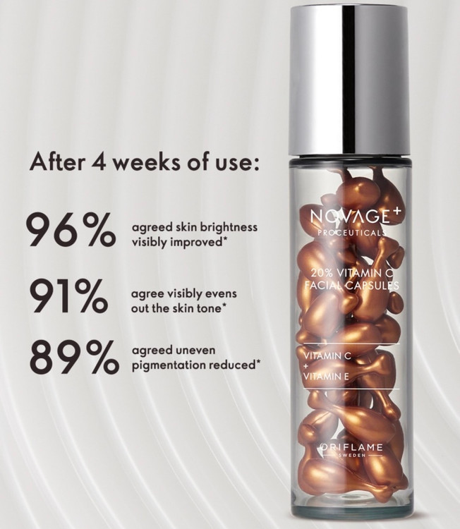 • ترکیب قدرتمند ویتامین C و ویتامین E به کمرنگ کردن لکههای تیره و تغییرات رنگ پوست کمک میکند.