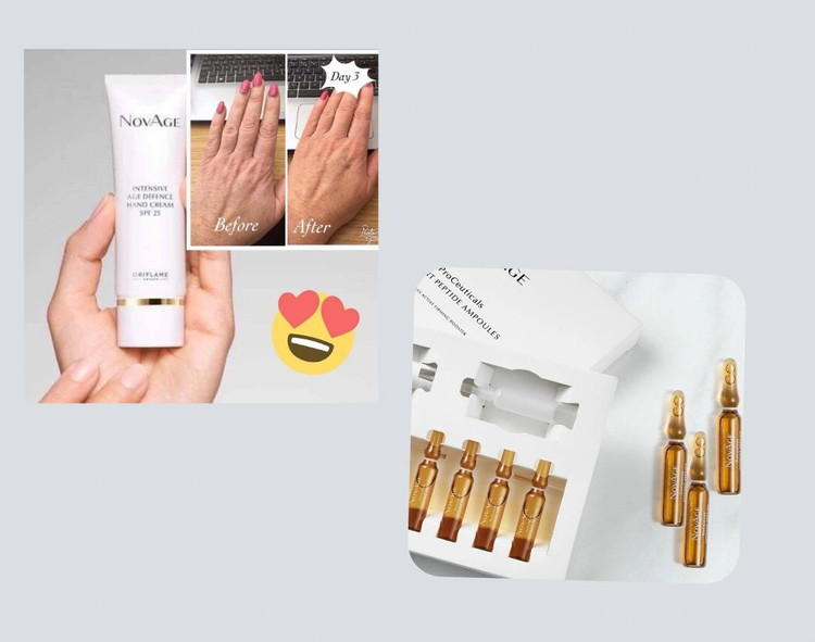 ست آمپولهای سرمی پپتیدی نوایج پروستیکال اوریفلیم وکرم دست ضد چروک و ضدلک و ضد آفتاب نوایج اوریفلیم