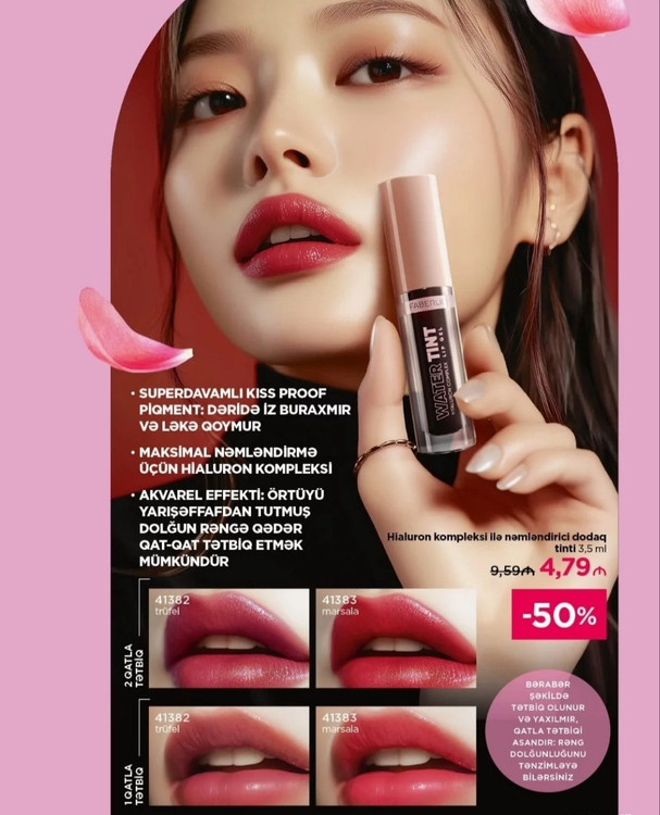 Moisturizing lip tint Faberlic Water Tint Glam Team series with hyaluronic complex