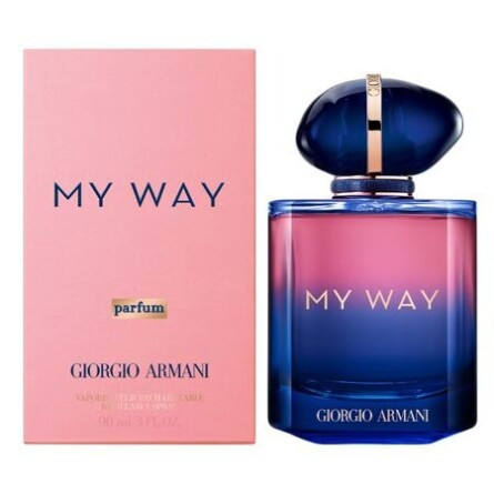 • بطری جدید مای وی پارفوم براساس تضاد چشمگیر بین درپوش آبی تیره و رنگ صورتی در بدنه آن شکل میگیرد.