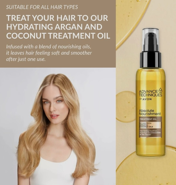 روغن آرگان و نارگیل Avon برای تریتمنت و تغذیه مو حجم 100 میلی لیتر