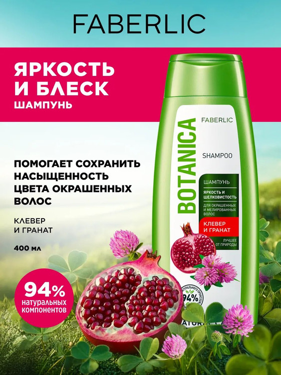Shampoo for colored and highlighted hair "Brightness and silkiness" Botanica, 400 ml