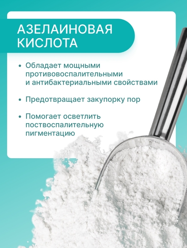 • اسید آزلائیک دارای خواص ضد التهابی و ضد باکتریایی قدرتمندی است و از گرفتگی منافذ جلوگیری میکند.