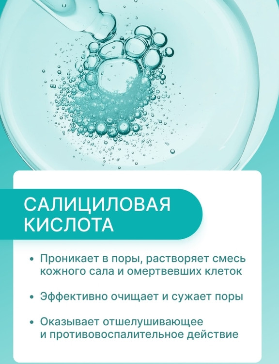 • اسید سالیسیلیک به عمق منافذ نفوذ میکند، سبوم و سلولهای مرده پوست را حل میکند، منافذ را بهطور مؤثر تمیز و سفت میکند.