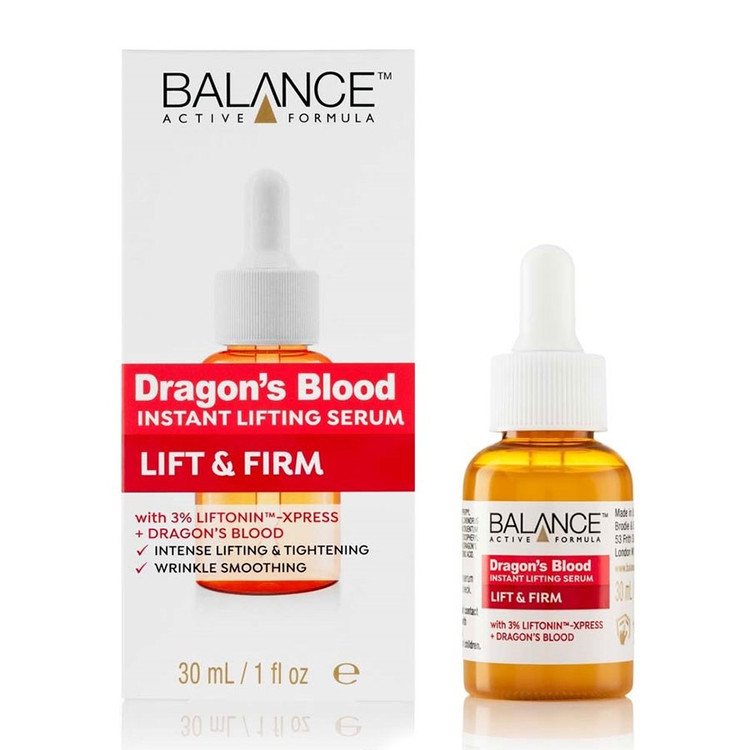 سرم دراگون بلاد Dragon’s Blood بالانس یک سرم صورت سبک و فاقد چربی است که به منظور لیفت کردن و سفت کردن پوست طراحی شده است. سرم بالانس حاوی مواد مغذی پوست است. از عصاره درخت دراگون بلاد و لیفتونین اکسپرس سه درصد در فرمولاسیون ابتکاری این محصول استفاده شده است. این دو ماده به سفت شدن سریع پوست در کمترین زمان ممکن کمک میکند.